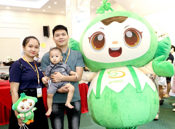 Vợ chồng anh Thành chị Oanh hạnh phúc bên con yêu tại Lễ Tổng kết Tuần Lễ Vàng 2025