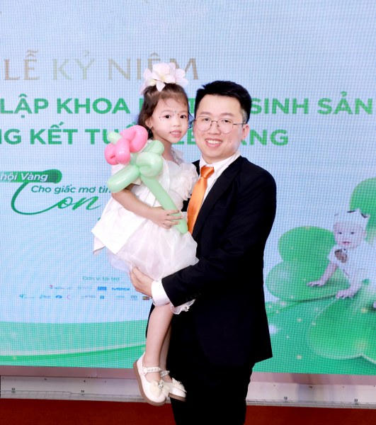 BSCKI Nguyễn Thành Trung chụp ảnh bên quả ngọt IVF từ Bệnh viện Nam học và Hiếm muộn Hà Nội