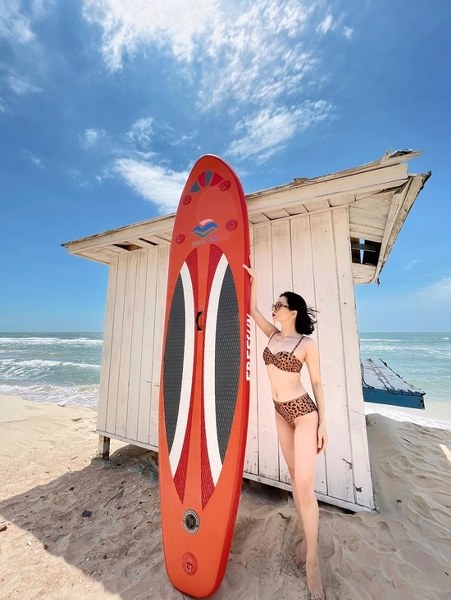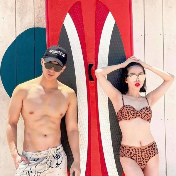 Ca sĩ Lệ Quyên diện bikini, khoe vóc dáng nóng bỏng bên tình trẻ Lâm Bảo Châu trong chuyến đi đến Hồ Tràm cách đây ít hôm.