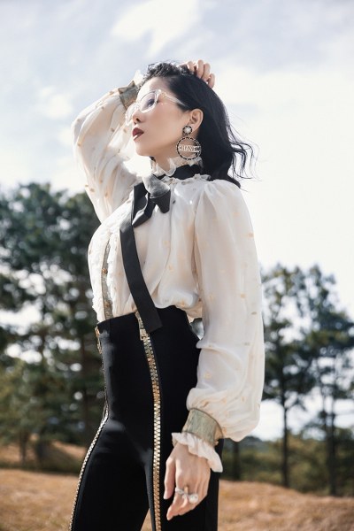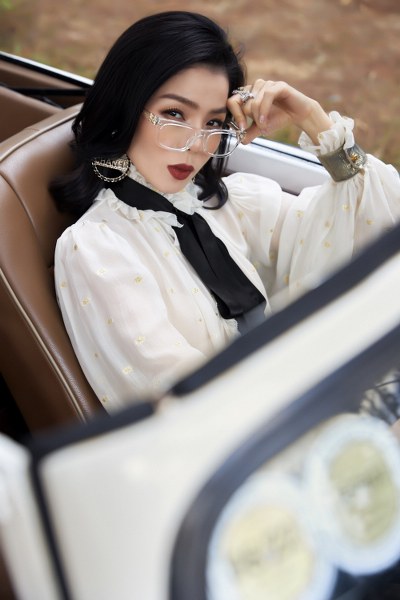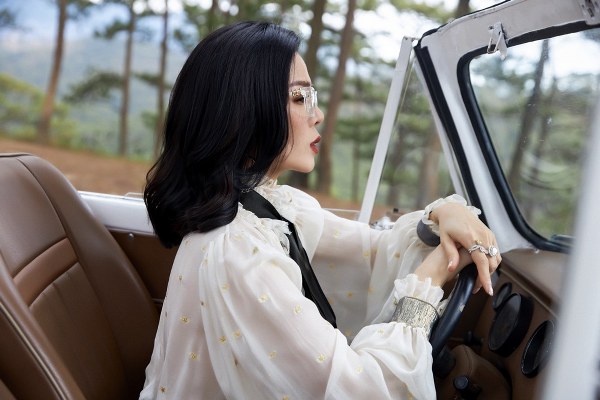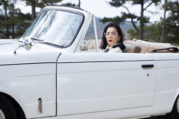 Ca sĩ Lệ Quyên tự cầm lái xế hộp mui trần màu trắng quay một số cảnh trong MV mới.