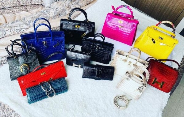 Ca sĩ Lệ Quyên ngồi như \'bà hoàng\' giữa bộ sưu tập túi xa xỉ, trong đó có nhiều mẫu quý hiếm không dễ để sở hữu.
