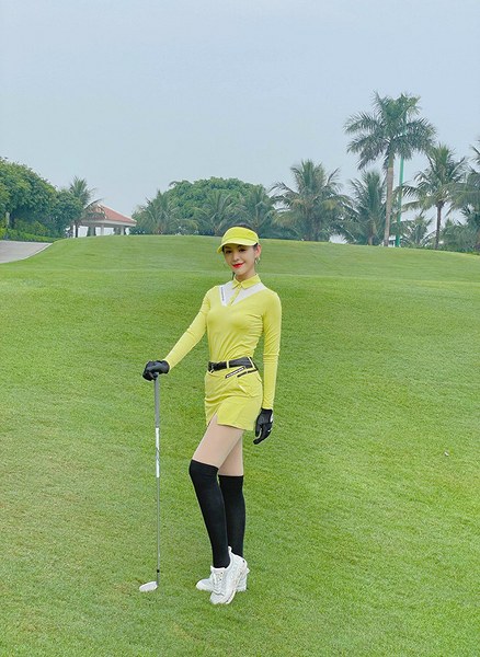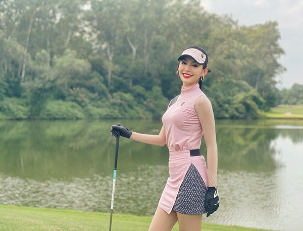 \"Người đẹp tài năng\" của Hoa hậu Thế giới Việt Nam 2019 - Lê Thanh Tú - chuộng trang phục màu sắc rực rỡ khi khoe sắc trên sân golf.