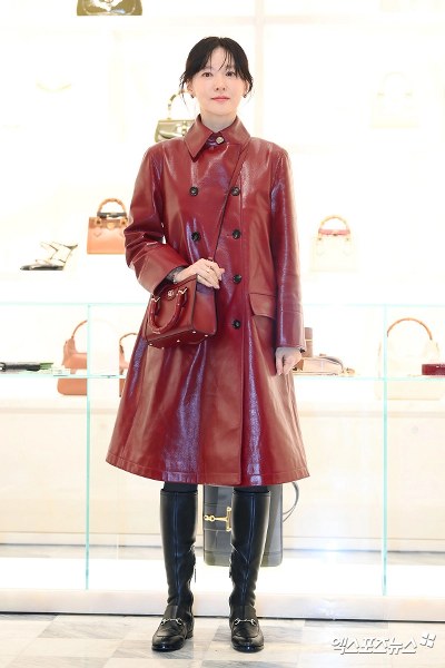 Lee Young Ae phối trench coat da của Gucci với boots, túi xách cùng thương hiệu, khi dự sự kiện ở Seoul, Hàn Quốc, ngày 7/2.