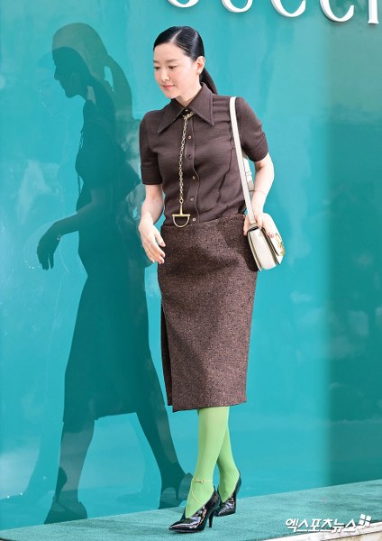 Tại sự kiện, Lee Young Ae để lộ nét đẹp dịu dàng, phong cách thời trang quý phái. Gương mặt trang điểm nhẹ, buộc tóc gọn gàng càng làm tăng vẻ ngoài sang trọng của “quốc bảo nhan sắc Hàn Quốc”.