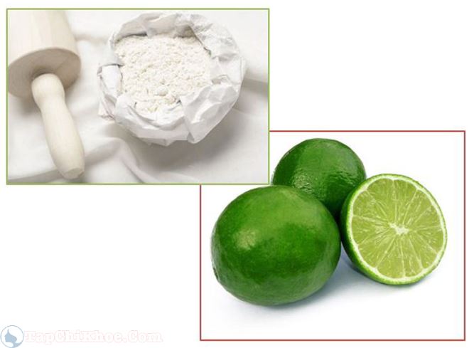 Nước chanh 50 ml, bột mì 3 thìa, hai thứ trộn đều với nhau thành dạng hồ. Rửa sạch mặt rồi thoa hồ thuốc lên thành một màng mỏng, sau 30 phút thì lau sạch. Công dụng: Làm da nhu nhuận, trắng đẹp và phòng chống nếp nhăn.