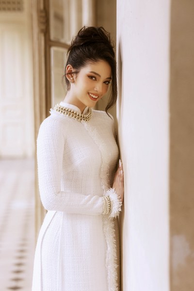 Trong bộ ảnh chụp khi trở về Việt Nam dịp Tết Nguyên đán 2023, nàng mẫu tuổi teen sở hữu vẻ đẹp lai tựa thiên thần LiLy Feller khoe dáng yêu kiều với các mẫu áo dài vải tweed và đầm dạ hội lộng lẫy.