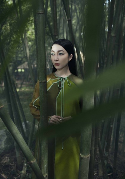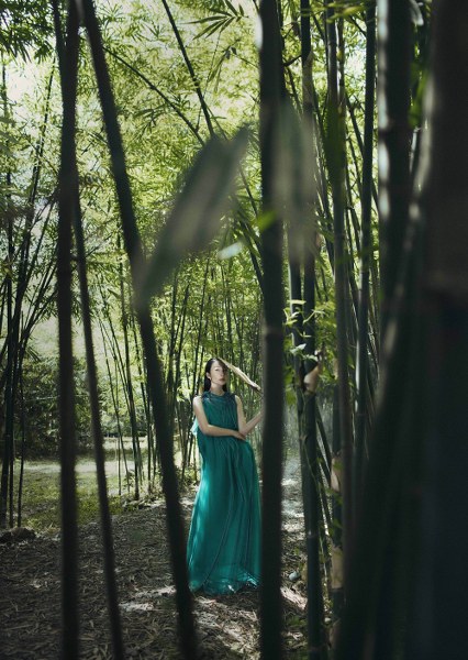 Diễn viên múa Linh Nga diện váy xanh vải lụa đem đến sự bồng bềnh, nữ tính nhưng không kém phần quyến rũ.