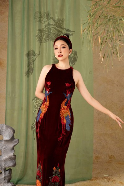 Linh Nga cuốn hút trong bộ váy nhung được thêu cầu kỳ.