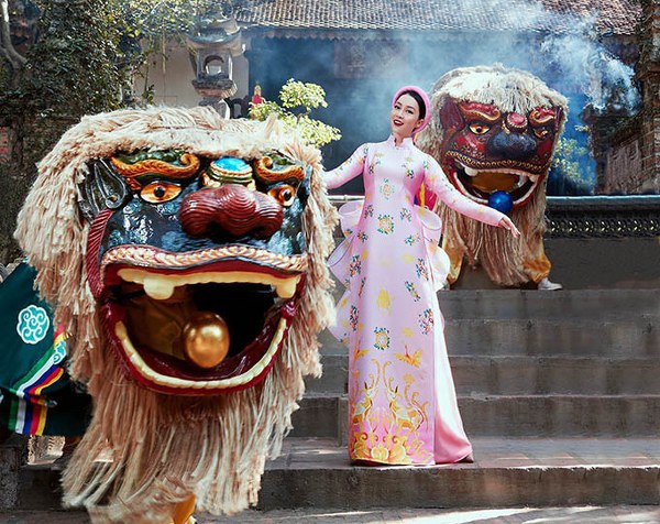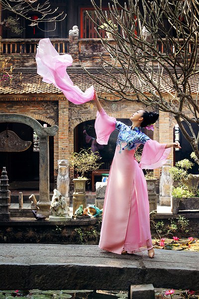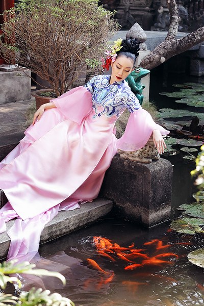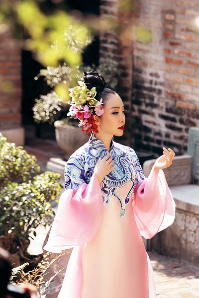 Bộ ảnh được thực hiện trong khu vườn Việt Phủ Thành Chương ở ngoại thành Hà Nội với với không gian cổ kính, bao quanh là cây cối xanh tươi, mang đậm vẻ thôn dã của làng quê Bắc Bộ.