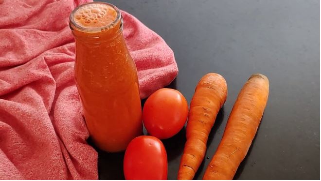 Cà rốt và cà chua chứa nhiều vitamin C, là tiền chất để sản sinh collagen. Hơn nữa, vitamin A có trong hai loại củ quả này còn có tác dụng tiêu diệt các gốc tự do, phòng chống nếp nhăn. Cà chua và cà rốt còn có hàm lượng lycopene cao, một chất chống oxy hóa có tác dụng trẻ hóa làn da.