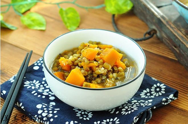 Bí đỏ giúp bồi bổ sinh lực, giàu vitamin, giàu chất xơ nên giúp làm giảm lượng đường trong máu của bệnh nhân tiểu đường. Còn đậu xanh có tác dụng thanh nhiệt giải độc, bồi bổ cơ thể giải khát. Nấu đậu xanh với bí đỏ giúp bồi bổ sức khỏe rất tốt.