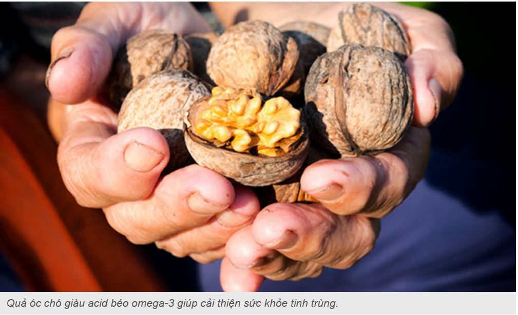 Ăn quả óc chó như một phần của chế độ ăn uống cân bằng có thể cải thiện sức khỏe sinh sản nói chung vì quả óc chó rất giàu acid béo omega-3 giúp tinh trùng di chuyển tốt hơn. Chất chống oxy hóa trong quả óc chó như vitamin E và polyphenol giúp bảo vệ tế bào tinh trùng khỏi bị tổn thương do các chất có hại trong cơ thể gây ra. Quả óc chó cũng chứa kẽm, một khoáng chất quan trọng để tạo ra và duy trì tinh trùng khỏe mạnh.
