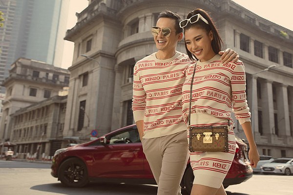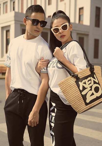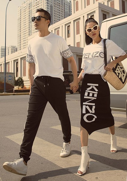 Vợ chồng diễn viên Lương Thế Thành diện đồ đôi sang chảnh, \'trốn\' con trai đi dạo, chụp ảnh ở trung tâm Sài Gòn.