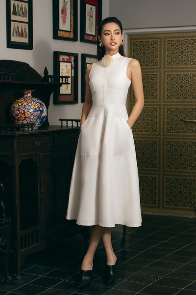Theo đuổi phong cách thời trang minimalism, Lương Thùy Linh không thích có nhiều họa tiết mà hướng đến sự thanh lịch, sang trọng thông qua kiểu dáng và chất liệu.