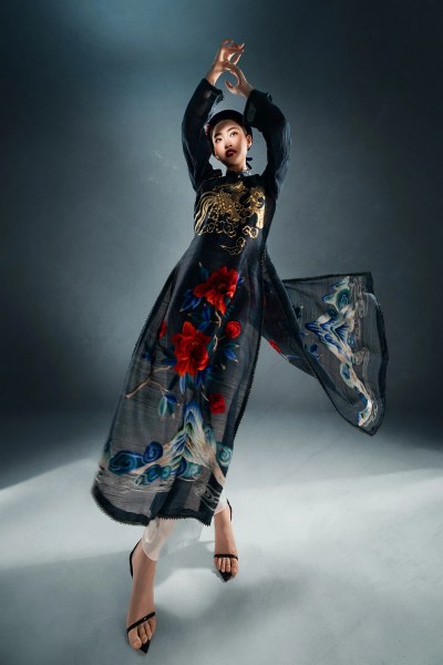 Phom dáng áo của người Hà Nội trong thập niên 1930 được khai thác tối đa, kết hợp kiểu tà kép với lớp lót bên trong, nhằm hướng đến vẻ cổ điển mà vẫn mới mẻ.