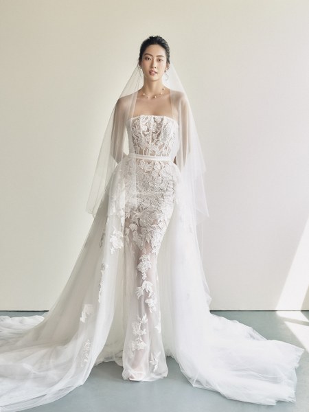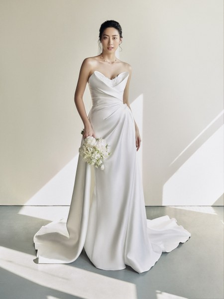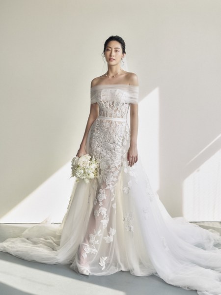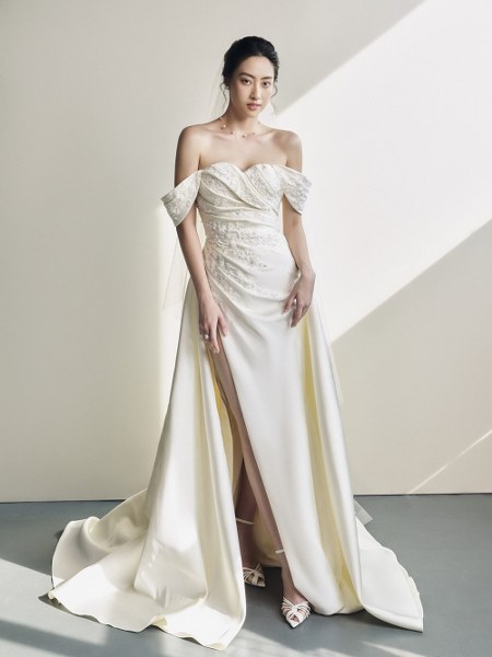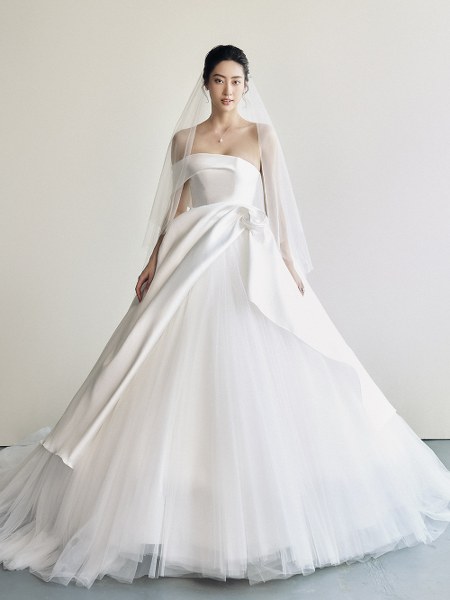 Các thiết kế sử dụng chất liệu cao cấp quen thuộc như: organza, tulle, mikado, taffeta, satin... được dựng trên những form dáng của ball gown, nét quyến rũ thu hút của fit and flare, sự thanh lịch và sang trọng của A-line hay kiểu dáng over-skirt làm tăng thêm độ bay bổng cho cô dâu nơi lễ đường.