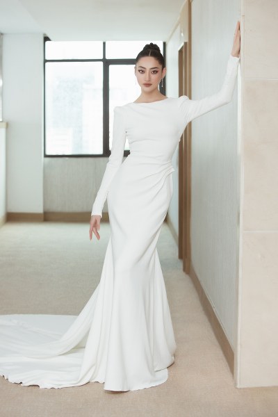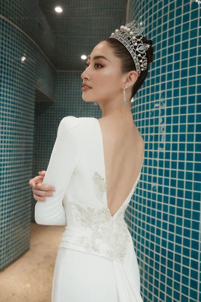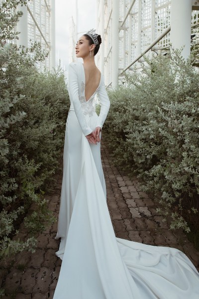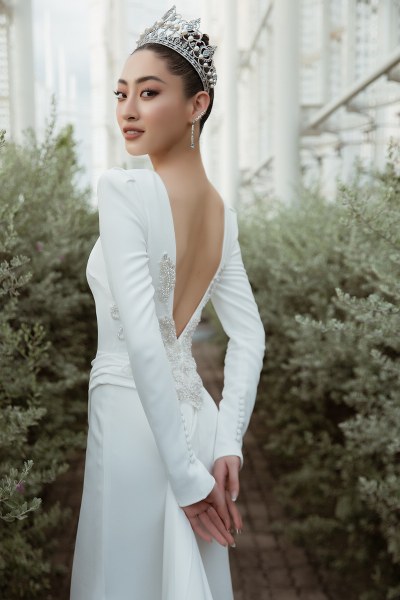 Lương Thùy Linh mặc váy cưới khoét lưng trong BST \"Hollywood Glamour\".