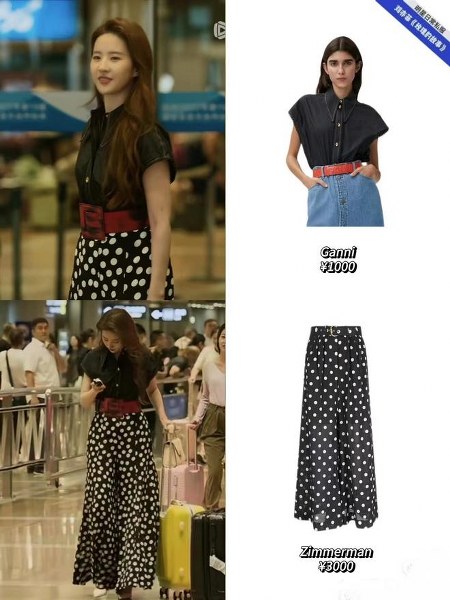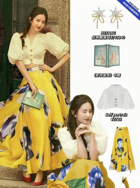 Trong một phân đoạn khác, nhân vật Hoa Hồng (tên thân mật ở nhà của Diệc Mai) diện sơ mi ngắn tay màu kem ôm sát cơ thể, giúp tôn lên vòng eo thon gọn. Không chỉ vậy, phần thiết kế cổ chữ V kèm tay phồng trở thành điểm nhấn khiến người mặc trở nên nữ tính, điệu đà như một cô công chúa nhỏ thanh tú. Chiếc áo này được Lưu Diệc Phi mix kèm chân váy dáng chữ A màu vàng in hoạ tiết hoa lá cách điệu, mang thêm đôi giày cao gót mũi nhọn màu đỏ. Cư dân mạng cũng nhanh chóng nhận ra chiếc áo trong bộ đồ phong cách cổ điển, diễm lệ này do một thương hiệu thời trang đến từ Anh có tên Self Portrait thiết kế, có giá khoảng 9 triệu đồng cho sản phẩm tương tự.