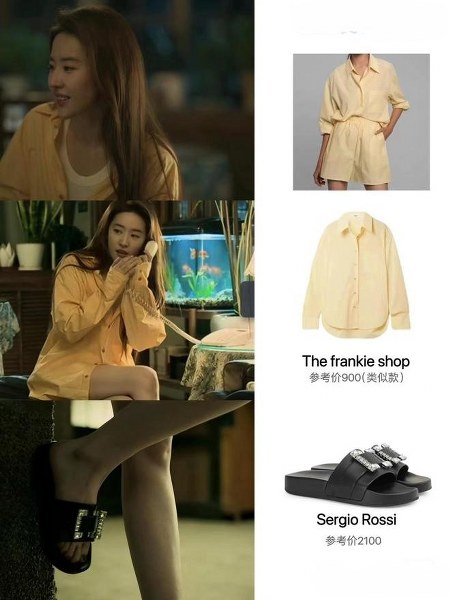 Trong những tập đầu, Lưu Diệc Phi diện rất nhiều kiểu áo sơ mi khác nhau. Một số blogger Trung Quốc tìm ra chiếc áo sơ mi màu vàng rộng thùng thình từng xuất hiện trong tập 1 đến từ The Frankie Shop có giá tham khảo khoảng 3 triệu đồng, được cô nàng kết hợp với dép lê màu đen của Sergio Rossi - một thương hiệu giày dép đến từ Italy giá khoảng 7,3 triệu đồng. Cùng với thần thái của Lưu Diệc Phi khi nhập vai, outfit kiểu “giấu quần” này làm tôn vẻ giản dị, nữ tính cho Diệc Mai, nhưng vẫn pha chút nghịch ngầm, bất cần.