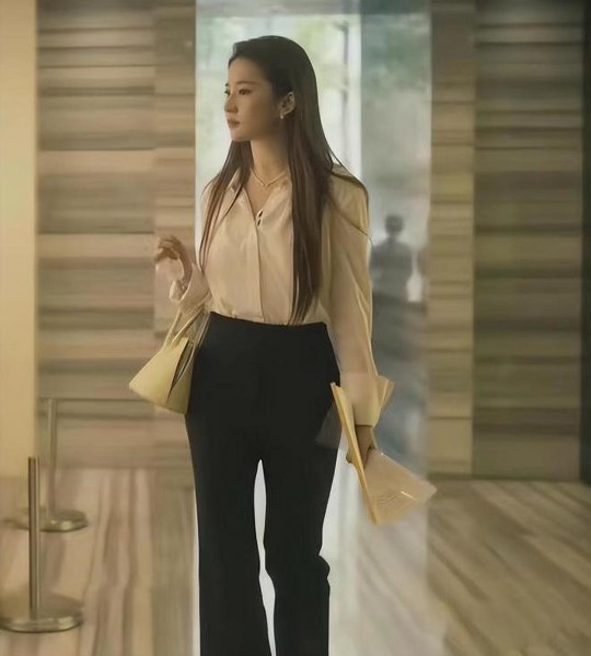 Khi tới công sở, Lưu Diệc Phi thường lưu ý chọn cho nhân vật của mình những outfit kiểu cổ điển, tối giản nhưng vẫn đem lại sự sang trọng, năng động cho người mặc, một trong số đó là kiểu phối áo sơ mi trắng kết hợp quần ống loe. Để thể hiện sự sành điệu, nữ diễn viên mix thêm với túi xách form cứng cùng tông màu khiến nhiều chị em công sở còn nói vui rằng hôm sau, họ muốn lên đồ y như Diệc Mai khi đến văn phòng.