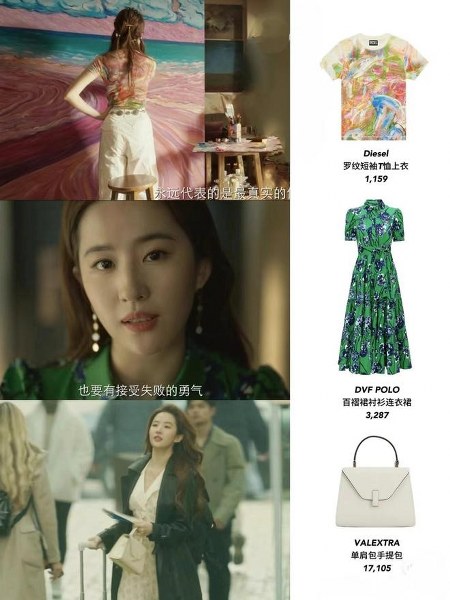 Trong một cảnh ở xưởng vẽ, thời điểm nhân vật Diệc Mai vẫn đang là sinh viên theo học tại trường Mỹ Thuật, Lưu Diệc Phi diện váy sơ mi kẻ sọc với hai tông màu đen trắng kết hợp cùng giày theo kiểu dáng ballet, tóc thắt bím hai bên cho vai diễn của mình. Dù lấy bối cảnh ở thời kỳ những năm 2000, ê kíp làm phim vẫn khéo léo lồng ghép, sử dụng những item thời trang hợp mốt đương đại, chẳng hạn giày kiểu ballet vẫn đang thuộc top hot item của giới fashionista trong các bộ sưu tập xuân hè năm nay.