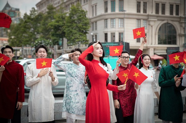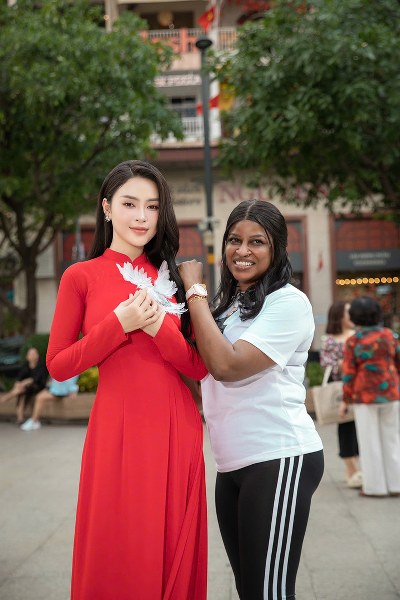 “Có những vị khách nước ngoài khen bộ áo dài của tôi đẹp. Họ còn hỏi tôi sắp có sự kiện gì, tôi đã giới thiệu với họ về ngày Đại lễ của đất nước”, Lý Kim Thảo chia sẻ.