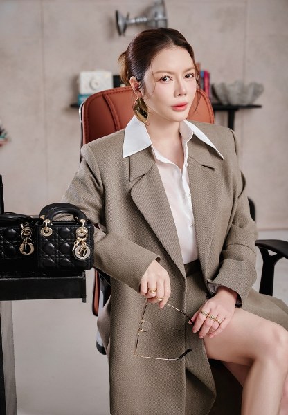 Cô có thể phối với 1 chiếc đầm vải tweed hoặc chiếc váy dáng dài cùng áo măng tô cách điệu. Chi tiết phụ kiện tinh xảo làm tăng thêm vẻ sang trọng, hiện đại.
