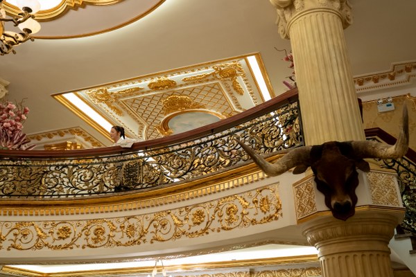 Với kiến trúc tuyệt đẹp mang hướng hoàng gia sang trọng, lộng lẫy, tòa cung điện thu nhỏ này khiến bất cứ ai nhìn thấy cũng đều phải trầm trồ. Chưa kể, phần tường, cầu thang, trần nhà lẫn đồ nội thất còn được gia chủ dát vàng hết sức tinh xảo. Sở hữu không gian rộng rãi, đầy đủ tiện nghi (phòng karaoke, chiếu phim, tập gym…) căn biệt thự hiện có giá khoảng 150 tỷ VNĐ.