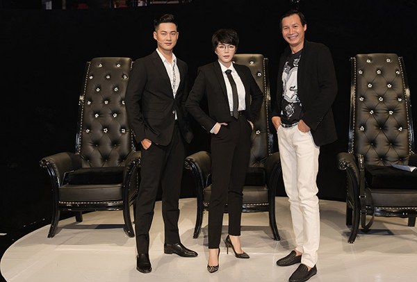 Người đẹp ngồi ghế giám khảo cùng ca sĩ Đức Tuấn (trái) và đạo diễn Vũ Thành Vinh. "Hôm nay tôi cố gắng gồng lên làm người đàn ông, trở thành huynh đệ của hai đồng nghiệp đây. Hy vọng anh em chúng ta không tương tàn", Lý Nhã Kỳ đùa.