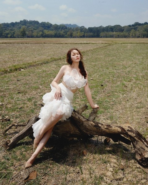 Stylist Trang Nhẹ Nhàng chọn trang phục phong cách bay bổng cho Lý Nhã Kỳ, phù hợp với khung cảnh thiên nhiên rộng lớn.