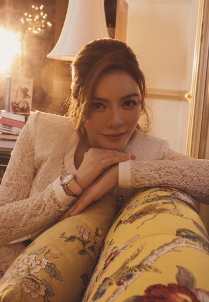 Lý Nhã Kỳ lựa chọn chiếc váy phong cách cổ điển nhẹ nhàng của NTK Lê Thanh Hoà, kết hợp kiểu tóc uốn nhẹ tạo nên hình ảnh ngọt ngào nhưng không kém phần quyến rũ.