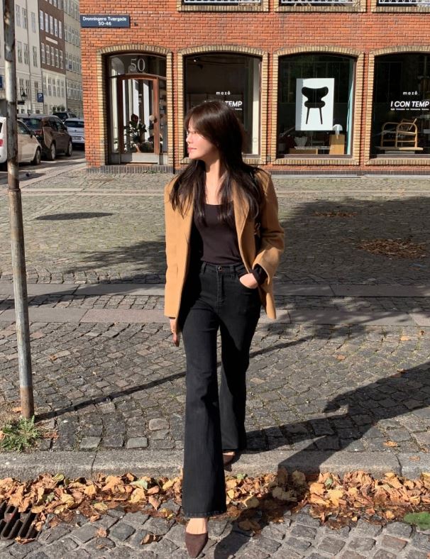 Blazer dạ thường có phom đứng, đường cắt may rõ ràng, giúp tổng thể trang phục trông gọn gàng và nghiêm túc vừa đủ. Khi phối đồ, có thể kết hợp blazer dạ cùng áo len mỏng, áo cổ lọ và quần âu hoặc quần jeans tối màu. Chỉ cần hoàn thiện với boots cổ thấp hoặc giày loafers là đã có một outfit Tết vừa ấm áp vừa thời trang.