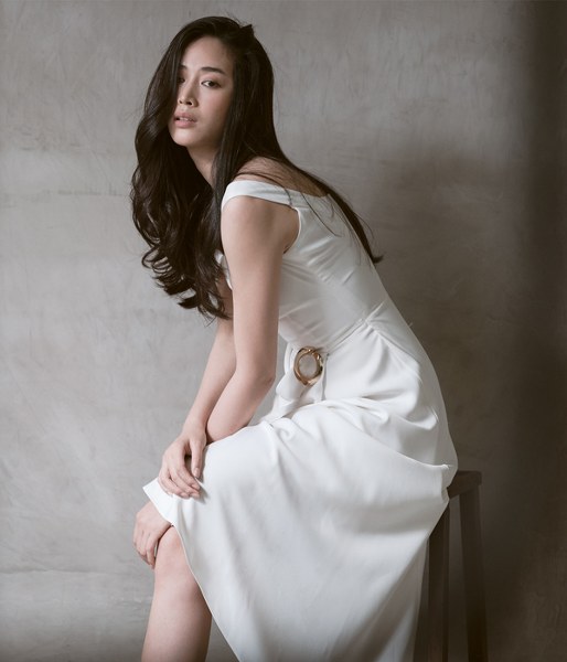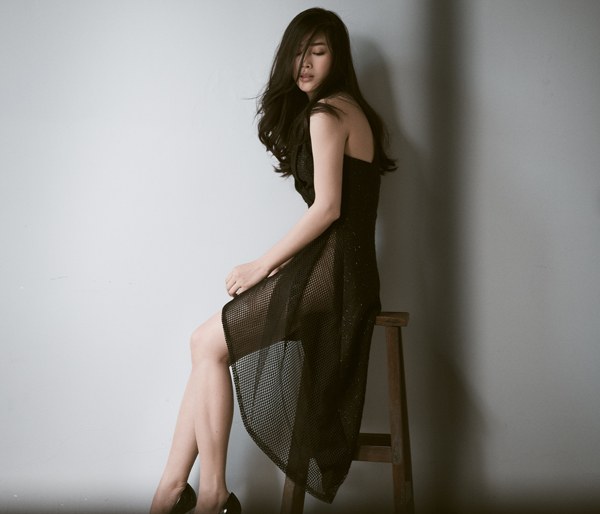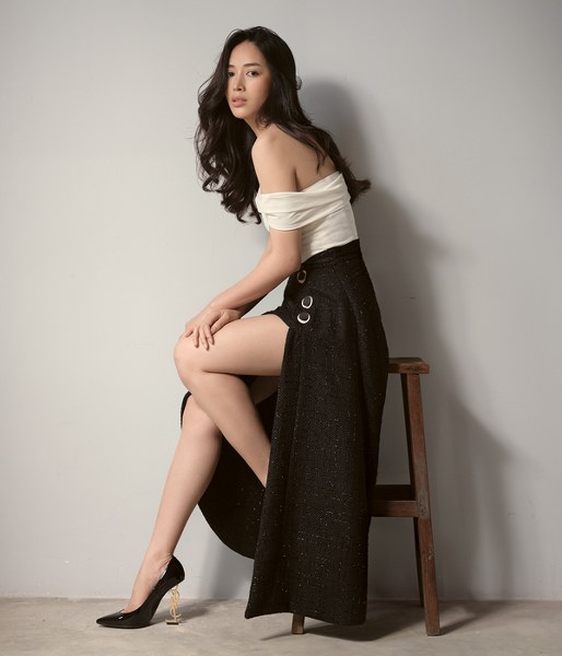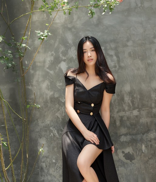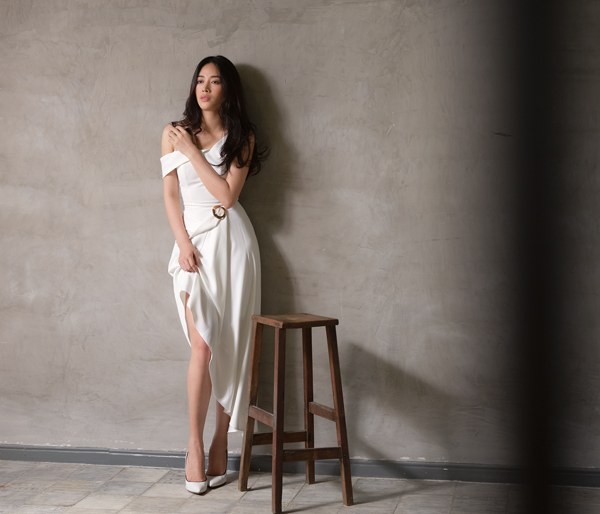 Nữ diễn viên giới thiệu các trang phục đơn sắc của nhà thiết kế Nguyễn Hà Nhật Huy.