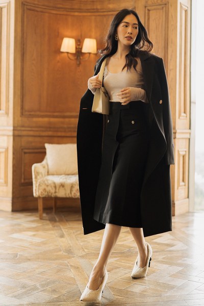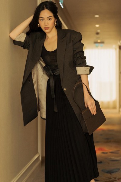 Diễn viên Mai Thanh Hà khoe dáng mảnh mai và vẻ đẹp dịu dàng, nữ tính với các thiết kế kín đáo, chỉn chu khi xuống phố.