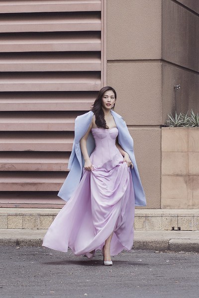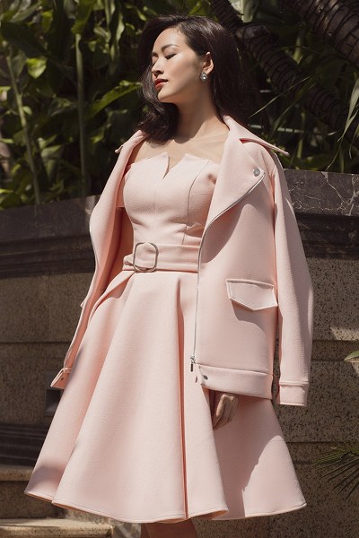Trang phục tông hồng phấn, xanh baby được nữ diễn viên mix theo phong cách thanh lịch.