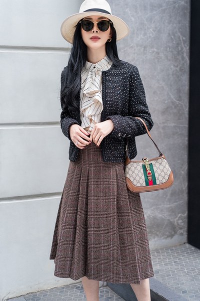 Mai Thanh Hà mix-match trang phục hợp mùa để tận hưởng không khí mát lạnh của Hà Nội vào những ngày cuối năm.