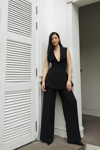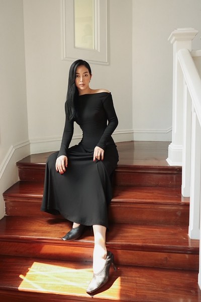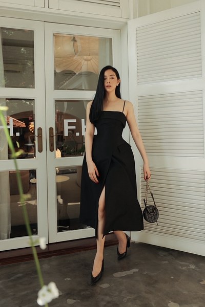 Tông màu đen vốn có tính linh hoạt cao, thậm chí phù hợp với mùa lễ hội như Giáng sinh và năm mới sắp đến. Là người yêu thời trang, Mai Thanh Hà muốn bản thân nổi bật nhờ chiếc váy hai dây màu đen, tôn hình thể mảnh khảnh.