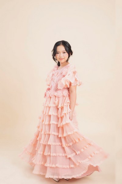 Mẫu nhí Băng Băng khoe nét đẹp trong veo với những mẫu váy xòe bồng bềnh như một nàng công chúa.