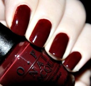 Với lợi thế là sắc đỏ luôn mang lại sức cuốn hút nên hiển nhiên sẽ không có gì khiến bạn ngạc nhiên nếu nó nằm trong những lựa chọn hàng đầu. Tuy nhiên khác với sắc đỏ nổi bật của truyền thống, tông màu đỏ bầm chưa bao giờ lỗi mốt với bất kì mùa nào. Đặc biệt, trong mùa lễ hội cuối năm như Giáng sinh, những dịp tiệc tùng thì màu đỏ sẽ càng làm bạn thêm nổi bật và quyến rũ. Những màu sơn móng tay đẹp đỏ tông đậm, gần như sắc nhung luôn tôn lên màu da của bạn.