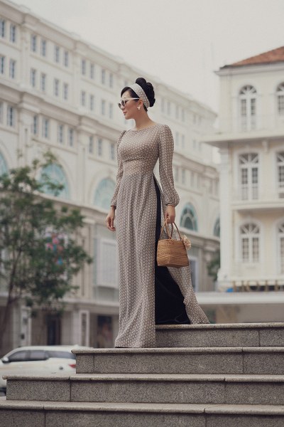Nữ MC hóa thân thành bà Đặng Tuyết Mai để giới thiệu bộ sưu tập \'Người đẹp Thành Đô\' của Võ Việt Chung.