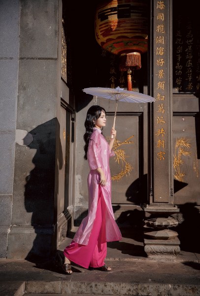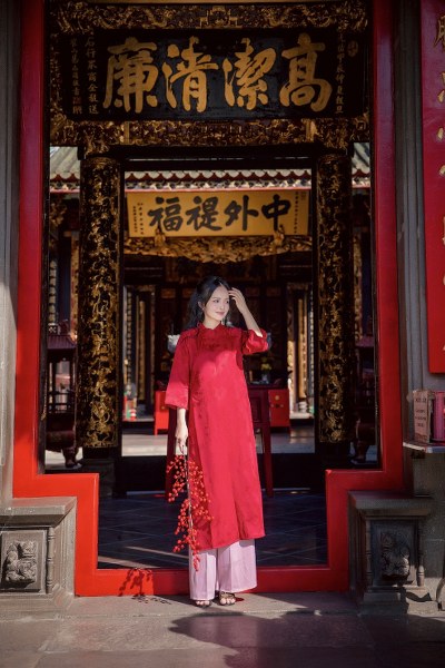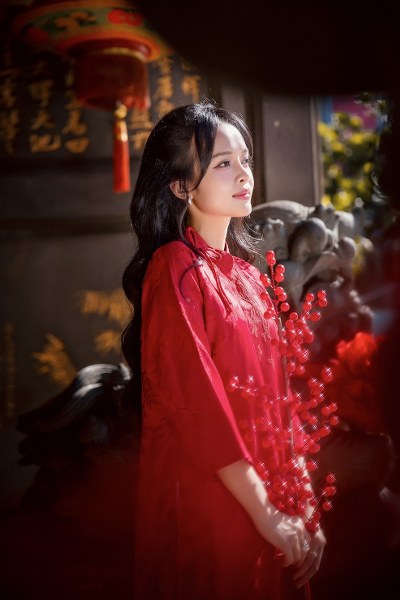 MC Thanh Trúc vừa thực hiện bộ ảnh năm mới Ấn Tỵ tại Hội Quán Nghĩa An và Chùa Bà Thiên Hậu vào buổi trưa nắng của những ngày cận Tết.