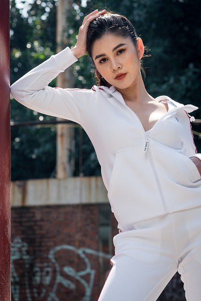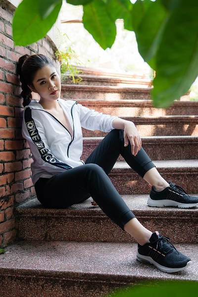 MC thể thao Thu Hoài diện trang phục thể thao khỏe khoắn nổi bật với phong cách năng động.