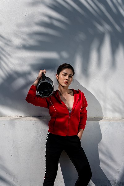 Tone màu đỏ đen xây dựng hình tượng một Thu Hoài năng động, mạnh mẽ