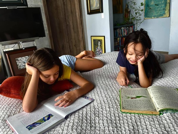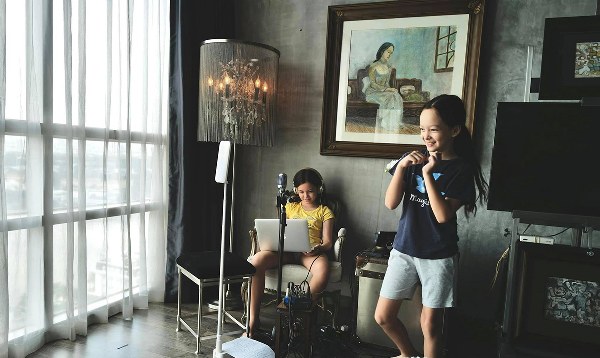 Trong thời gian giãn cách xã hội, Hồng Nhung và hai con Tôm, Tép ở nhà đàn hát cho nhau nghe, cùng nấu ăn, vẽ tranh và đọc sách.