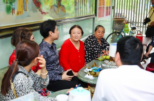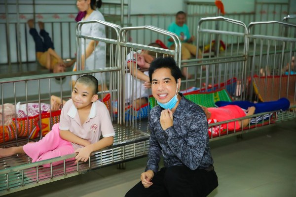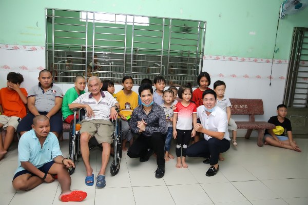 Hành trình quen thuộc của Ngọc Sơn đến Mái ấm Thiện Duyên lần này có sự đồng hành của mẹ anh – bà Kim Loan và học trò cưng Michael Lang.