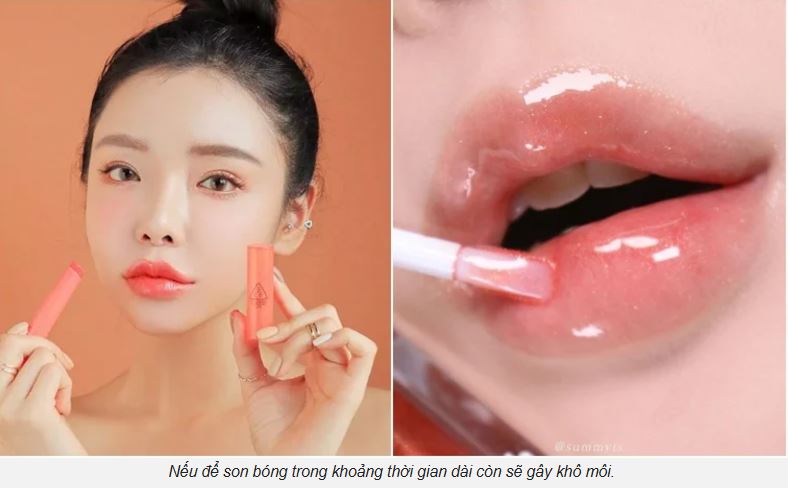 Nếu để son bóng trong khoảng thời gian dài còn sẽ gây khô môi.