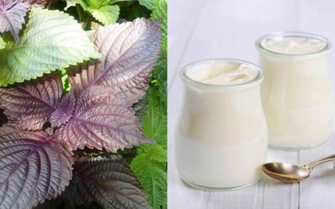 Chọn một nắm lá tía tô tươi, rửa sạch và để ráo, sau đó xay nhuyễn. Nếu dùng lá khô, bạn có thể thêm một chút nước đun sôi để nguội. Trộn đều lá tía tô đã xay với ½ hộp sữa chua không đường. Sau khi làm sạch da mặt, thoa đều hỗn hợp lên da, giữ trong khoảng 10 phút rồi rửa lại bằng nước mát.