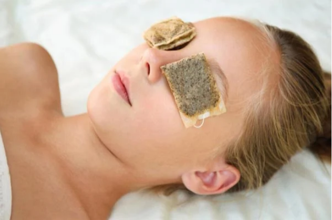- Để túi trà nguội bớt cho đến khi còn âm ấm thì đắp trực tiếp lên hai bên mắt. Nhắm mắt lại và thư giãn trong vòng 15–30 giây.
