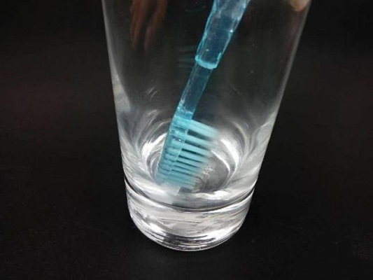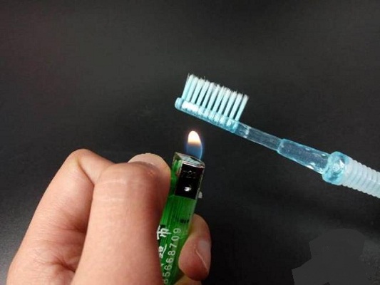 2. Cũng cách làm tương tự, dùng bật lửa hơ nóng chảy phần cổ bàn chải. Khi đó uốn chiếc bàn chải thành chữ L, bạn có thể dễ dàng làm sạch đáy cốc rồi.