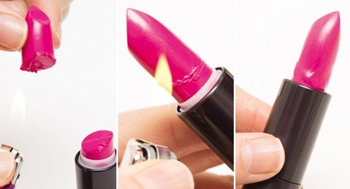 3. Xử lý thỏi son bị gãy: Nếu chẳng may thỏi son yêu quý của bạn bị gãy, bạn hãy hơ nóng nhẹ phần son bị rơi ra, sau đó gắn lại vào vị trí cũ của nó. Đơn giản vậy thôi là lại có cây son y như cũ rồi.